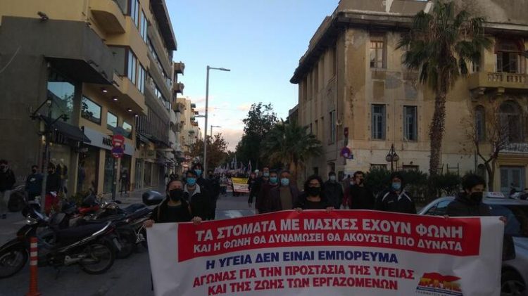Δυναμική συγκέντρωση και πορεία στο κέντρο της Ηρακλείου πραγματοποίησαν εργατικά σωματεία, Φοιτητικοί Σύλλογοι και άλλοι φορείς.