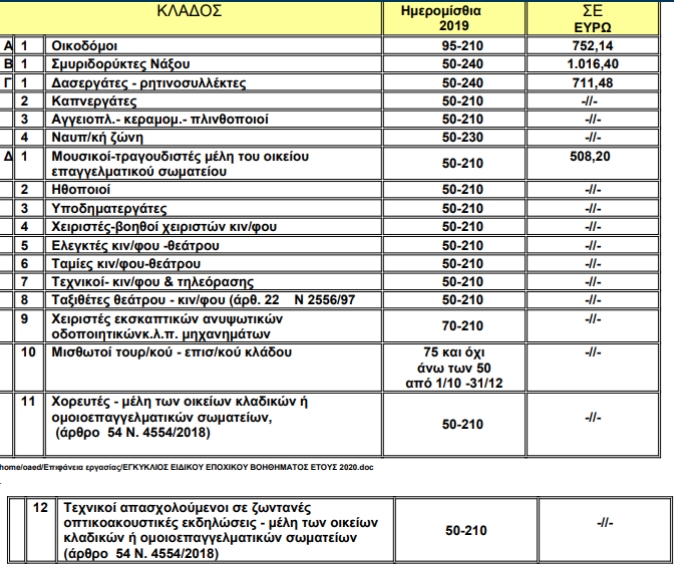 Οι δικαιούχοι του ειδικού εποχικού βοηθήματος του ΟΑΕΔ είναι οι εξής: