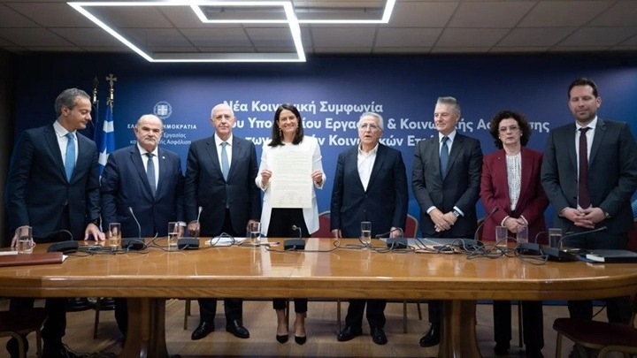 «Η Εθνική Κοινωνική Συμφωνία σηματοδοτεί την έναρξη μιας νέας εποχής για τις Συλλογικές Συμβάσεις Εργασίας. Η συμφωνία αυτή οδηγεί σε περισσότερες και ευκολότερα επεκτάσιμες Συλλογικές Συμβάσεις, μέσω των οποίων οι εργαζόμενοι θα δουν υψηλότερους μισθούς και θα εργάζονται με καλύτερους όρους και με υψηλότερη προστασία, οι επιχειρήσεις θα απολαμβάνουν μεγαλύτερη σταθερότητα και όλη η αγορά εργασίας θα ρυθμίζεται από σαφείς κανόνες. Η σημασία της όμως υπερβαίνει το πεδίο των εργασιακών σχέσεων. Αφορά τη λειτουργία της Δημοκρατίας μας. Αποδεικνύει ότι το κράτος μπορεί να λειτουργήσει ως καταλύτης για την εύρεση πεδίων σύγκλισης και ως εγγυητής εμπιστοσύνης. Ότι ο διάλογος, όταν είναι πραγματικός και όχι προσχηματικός, μπορεί να γίνει εργαλείο ανάπτυξης, σταθερότητας και κοινωνικής συνοχής».