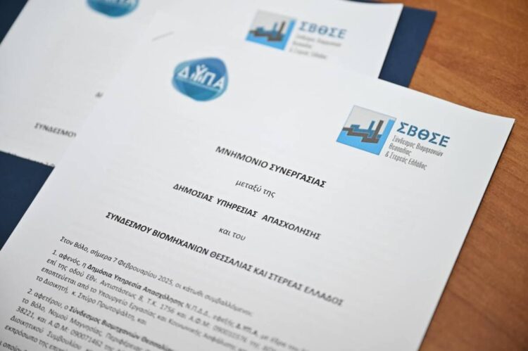 Μνημόνιο συνεργασίας υπέγραψαν χθες ο Διοικητής της Δημόσιας Υπηρεσίας Απασχόλησης (ΔΥΠΑ), Σπύρος Πρωτοψάλτης και ο Πρόεδρος Διοικητικού Συμβουλίου και Εκτελεστικής Επιτροπής του Συνδέσμου Βιομηχανιών Θεσσαλίας και Στερεάς Ελλάδας (ΣΒΘΣΕ), Αθανάσιος Συριανός, στο πλαίσιο της Ημέρας Καριέρας που πραγματοποιήθηκε στο Βόλο.Ο στόχος της συνεργασίας της ΔΥΠΑ και του ΣΒΘΣΕ είναι πολλαπλός, εστιάζοντας στη μείωση της αναντιστοιχίας μεταξύ προσφοράς και ζήτησης επαγγελματικών προσόντων και δεξιοτήτων στον κλάδο της βιομηχανίας, καθώς και στην παροχή ευκαιριών κατάρτισης και επανακατάρτισης για όσους αναζητούν εργασία, ώστε να διευκολυνθεί η ένταξή τους σε θέσεις εργασίας του κλάδου και να καλυφθούν οι ανάγκες για κατάλληλα εκπαιδευμένο ανθρώπινο δυναμικό για τις επιχειρήσεις – μέλη του ΣΒΘΣΕ.