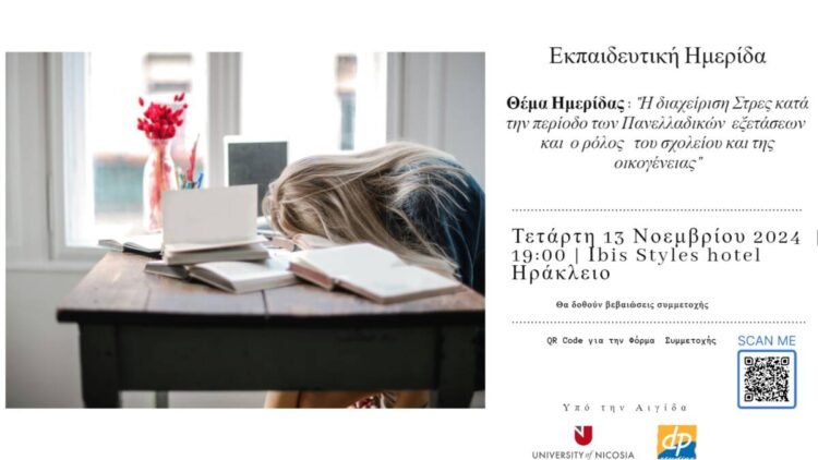 Εκπαιδευτική Ημερίδα: Η διαχείριση στρες κατά την περίοδο των Πανελλαδικών εξετάσεων και ο ρόλος του σχολείου και της οικογένειας – Τετάρτη 13 Νοεμβρίου