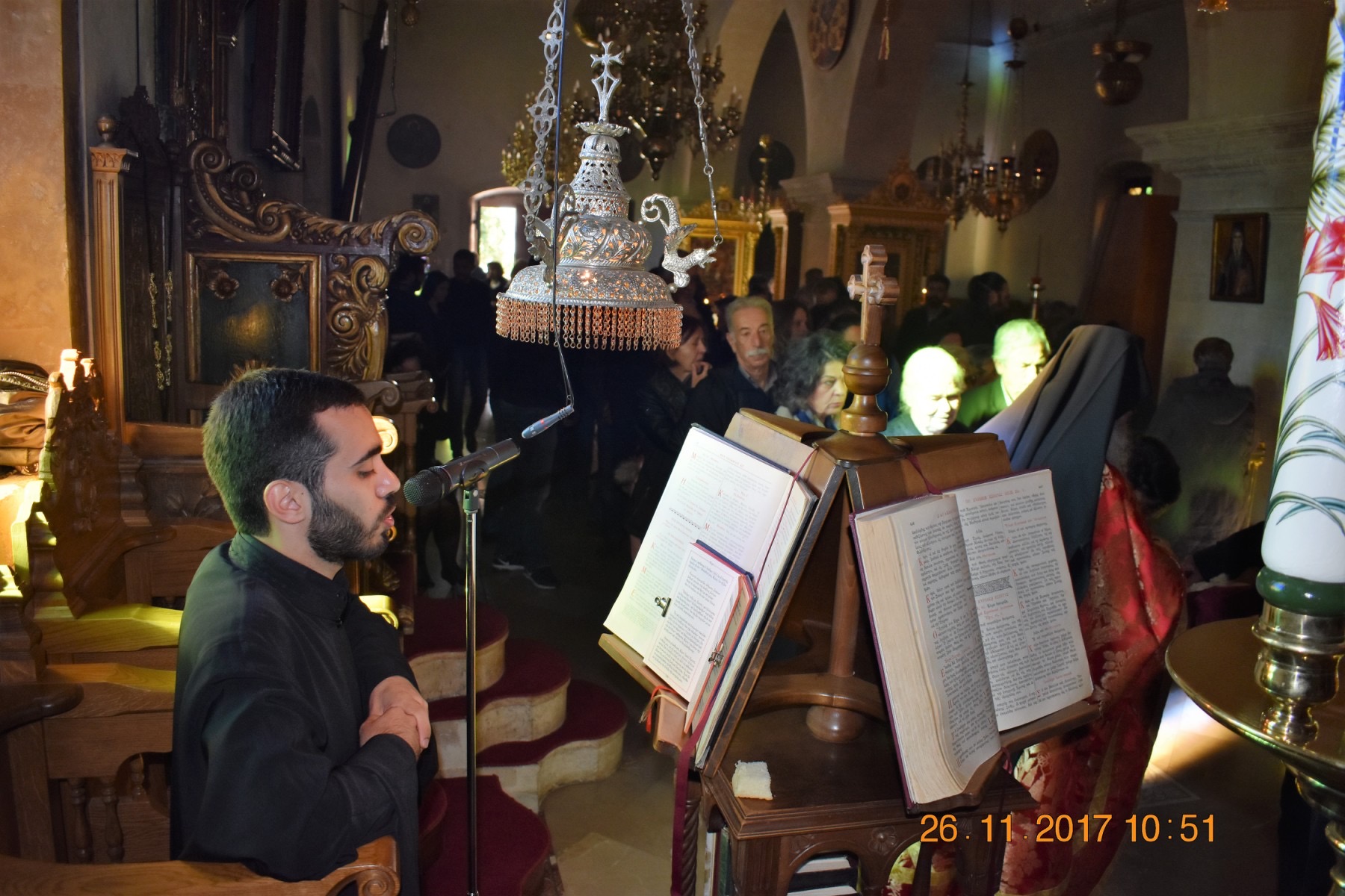 Εδώ και πολλά χρόνια είναι Ιεροψάλτης στην Ιερά Μονή Αγίου Γεωργίου Επανωσήφη στην Κρήτη.