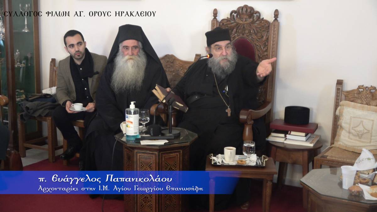 Ο π. Ευάγγελος Παπανικολάου, Πρωτοπρεσβύτερος, Ιατρός και Ιεραπόστολος, ήταν προσκεκλημένος του Σεβασμιωτάτου Αρχιεπισκόπου Κρήτης κ.κ. Ευγενίου και του Συλλόγου «Φίλοι Αγίου Όρους Ηρακλείου» για να ομιλήσει την Κυριακή 5 Φεβρουαρίου 2023, εις το Πνευματικό Κέντρο Παναγίτσας Μασταμπά στο Ηράκλειο.