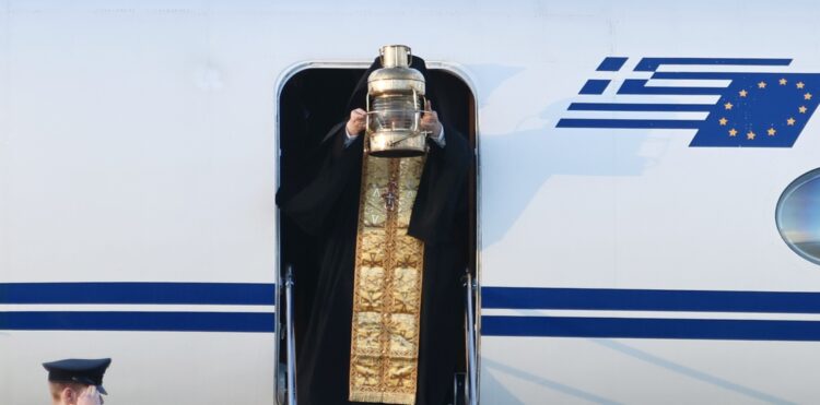 Το Άγιο Φως φτάνει στο αεροδρόμιο «Ελευθέριος Βενιζέλος» από τα Ιεροσόλυμα, με μέριμνα της ελληνικής κυβέρνησης, για να μεταφερθεί στη συνέχεια με προγραμματισμένες και έκτακτες ειδικές πτήσεις σε όλη την Ελλάδα, σκορπώντας φως και ελπίδα.