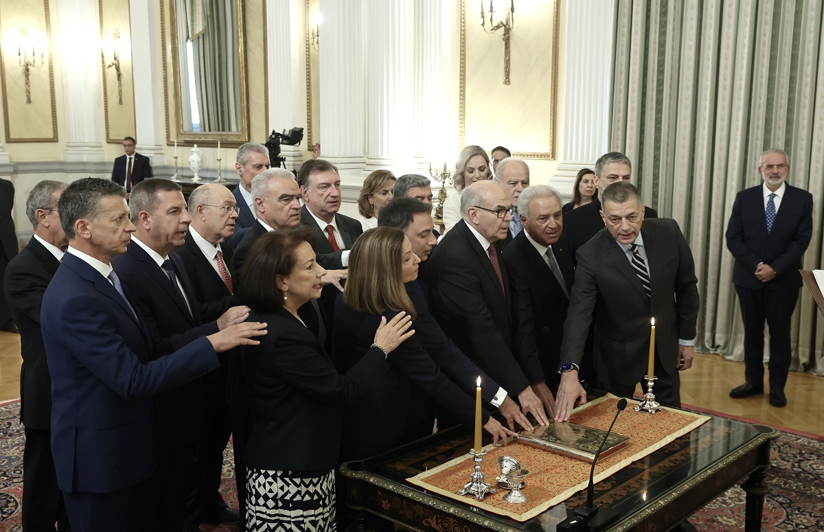 Ενώπιον της Προέδρου της Δημοκρατίας Κατερίνας Σακελλαροπούλου και παρουσία του πρωθυπουργού Ιωάννη Σαρμά, ορκίστηκαν τα μέλη της υπηρεσιακής κυβέρνησης.