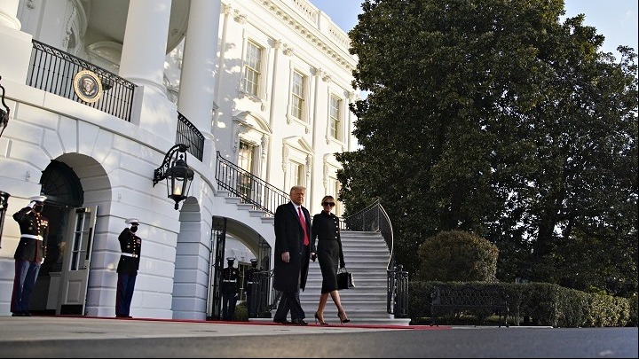 Ο Ντόναλντ Τραμπ αναχώρησε από τον Λευκό Οίκο επιβαίνοντας στο Marine One, το ελικόπτερο του Σώματος των Πεζοναυτών τον οποίο είχε προσγειωθεί στον κήπο του Λευκού Οίκου για να τον παραλάβει, λίγες ώρες πριν από την ορκωμοσία του Τζο Μπάιντεν στην προεδρία.