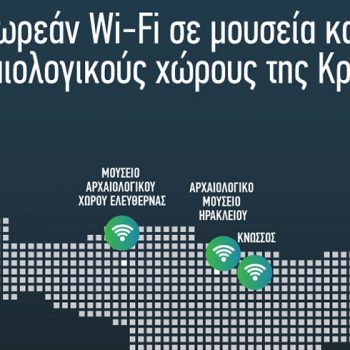 Δωρεάν ασύρματο δίκτυο ίντερνετ (Wi-Fi) προσφέρει η COSMOTE σε τέσσερις εμβληματικούς αρχαιολογικούς χώρους και μουσεία της Κρήτης: τον αρχαιολογικό χώρο της Κνωσσού, έδρα του ...
