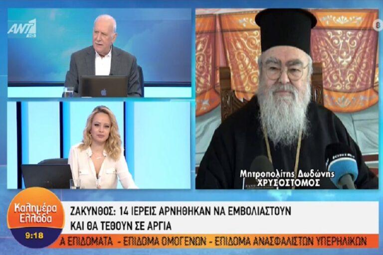 Ο μητροπολίτης Δωδώνης, Χρυσόστομος, επανέλαβε σε σημερινή του τηλεοπτική συνέντευξη ότι οι ιερείς που τάσσονται κατά του εμβολιασμού για τον ...