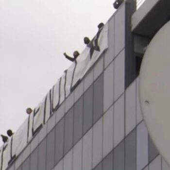 Μέλη του Ρουβίκωνα ανέβηκαν στην ταράτσα των γραφείων της Hellenic Train και ανέβασαν πανό28 Φεβ 2025