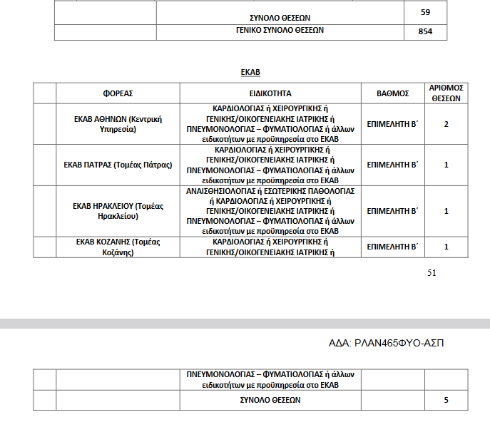 Η προκήρυξη αφορά θέσεις όλων ειδικοτήτων και των βαθμίδων στα νοσοκομεία αλλά και στο ΕΚΑΒ.