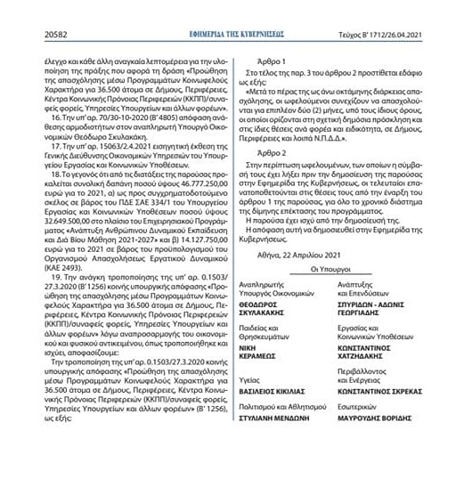 Eπίσημο: Δίμηνη παράταση στο πρόγραμμα της Κοινωφελους Εργασίας (ΦΕΚ)