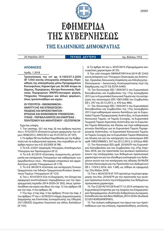 Eπίσημο: Δίμηνη παράταση στο πρόγραμμα της Κοινωφελους Εργασίας (ΦΕΚ)