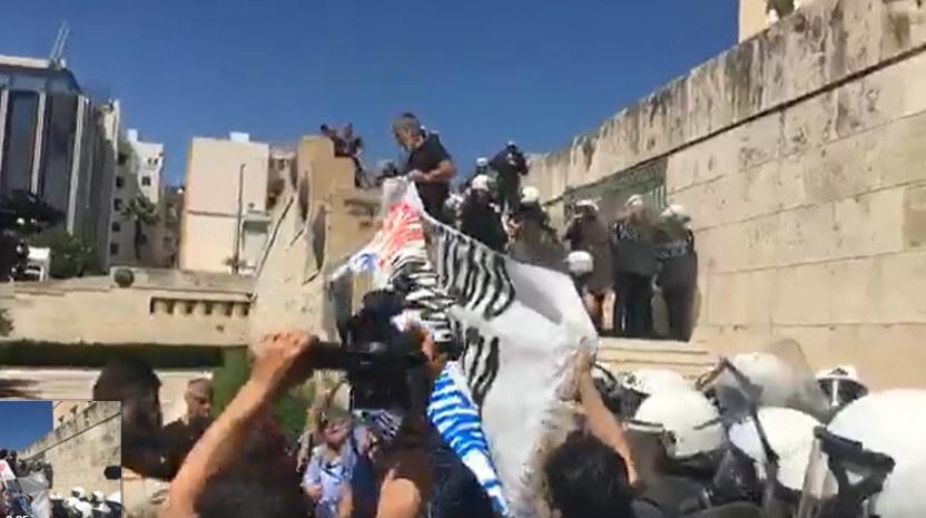 Επί τόπου βρέθηκαν ισχυρές δυνάμεις των ΜΑΤ και οι διαδηλωτές έμειναν για ώρα στα σκαλιά και φώναζαν συνθήματα.