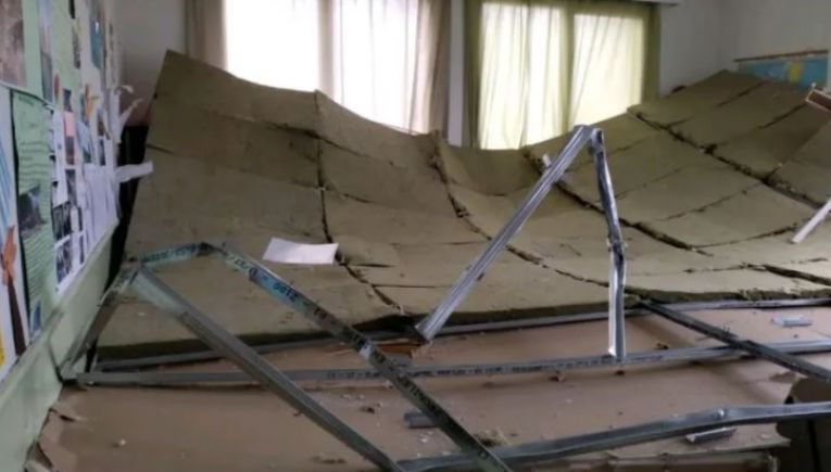 Ήμασταν μέσα στην τάξη, περιμέναμε να κατέβουμε για να πάμε εκδρομή και βλέπουμε το ταβάνι ραγισμένο από παντού. Βλέπαμε κομμάτια να πέφτουν στα θρανία. Η δασκάλα μάς είπε ότι είναι σοβαρό και πρέπει να να κατεβούμε. Και κάποια στιγμή την ώρα που κατεβαίναμε άρχισε να βουλιάζει το ταβάνι. Ακούσαμε ένα μπαμ πολύ δυνατό. Άλλα παιδιά που ήταν μπεσα στις τάξεις άκουσαν το μπαμ και μετά βγήκαν”, περιέγραψε μαθητής. “Φοβηθήκαμε πάρα πολύ”, είπαν με ένα στόμα τα παιδιά.