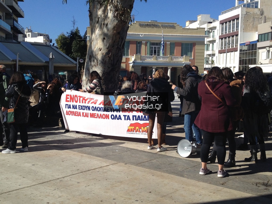 Οι σύλλογοι πραγματοποίησαν πορεία διαμαρτυρίας σε κεντρικούς δρόμους του Ηρακλείου και παράσταση στην Περιφερειακή Διεύθυνση Εκπαίδευσης Κρήτης.