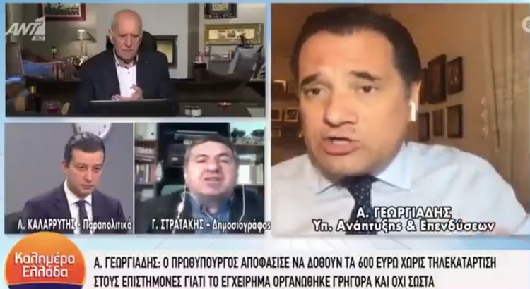 Ιδιαίτερα έντονος ήταν ο διάλογος που εκτυλίχθηκε ανάμεσα στον υπουργό Ανάπτυξης Άδωνι Γεωργιάδη και τον δημοσιογράφο Γιάννη Στρατάκη κατά την διάρκεια πρωινής εκπομπής του ANT1.
