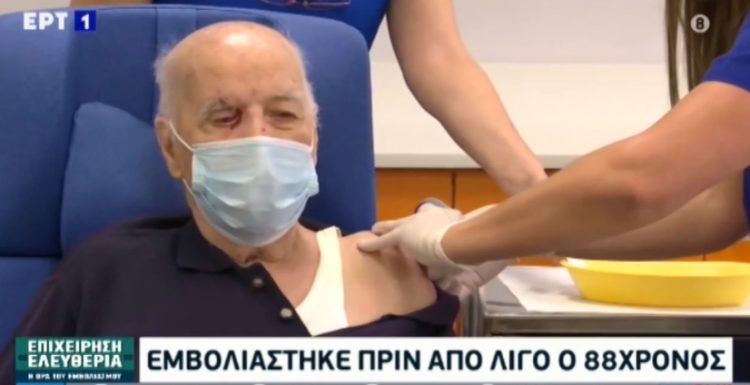 Λίγα μόλις λεπτά από τον πρώτο ιστορικό εμβολιασμό κατά του κορονοϊού σε νοσηλεύτρια της ΜΕΘ του νοσοκομείου «Ευαγγελισμός», πραγματοποιήθηκε και ο δεύτερος.