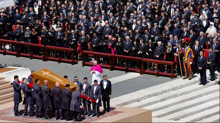 Δεκάδες διεθνείς ηγέτες βρέθηκαν στην πλατεία του Αγίου Πέτρου. Στις 10:10 τοπική ώρα άρχισε η κηδεία του πάπα Φραγκίσκου, σε μια κατάμεστη πλατεία του Αγίου Πέτρου.