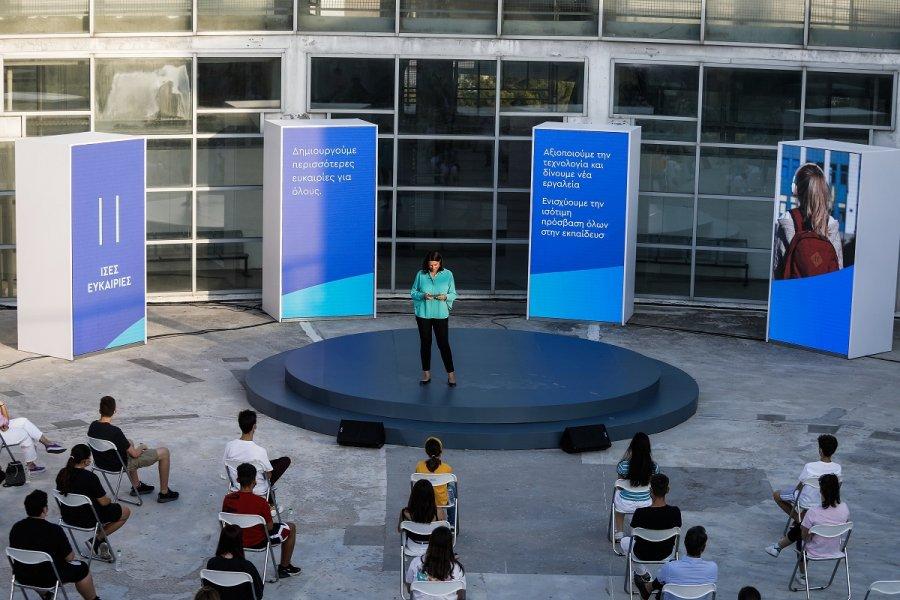 Το «αναβαθμισμένο σχολείο», που θα ισχύσει από το Σεπτέμβριο παρουσίασε η υπουργός Παιδείας και Θρησκευμάτων, Νίκη Κεραμέως, από το Στρογγυλό Σχολείο στον ‘Αγιο Δημήτριο, παρουσία του πρωθυπουργού, Κυριάκου Μητσοτάκη.