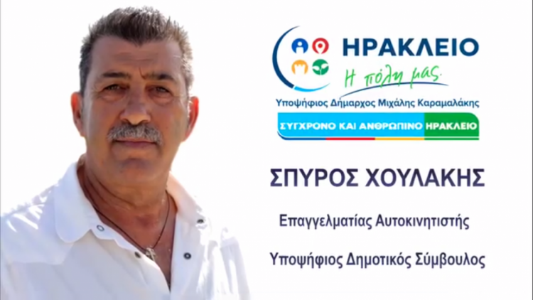 Δείτε το προεκλογικό σποτ του Σπύρου Χουλάκη, υποψήφιου Δημοτικού Σύμβουλου Ηρακλείου με το συνδυασμό «Ηράκλειο η πόλη μας» του Μιχάλη Καραμαλάκη.